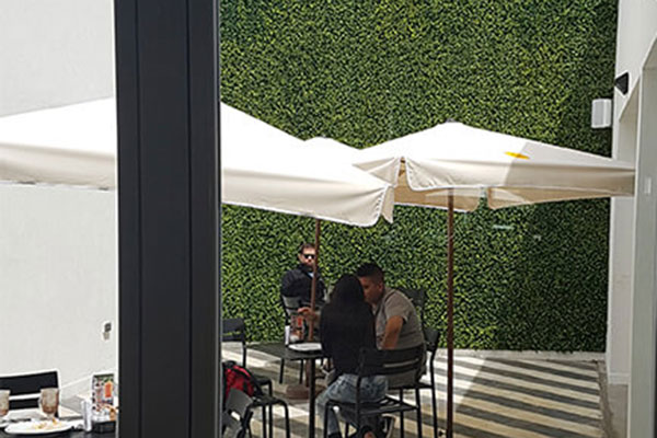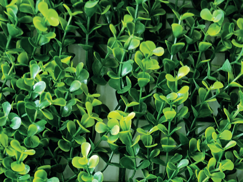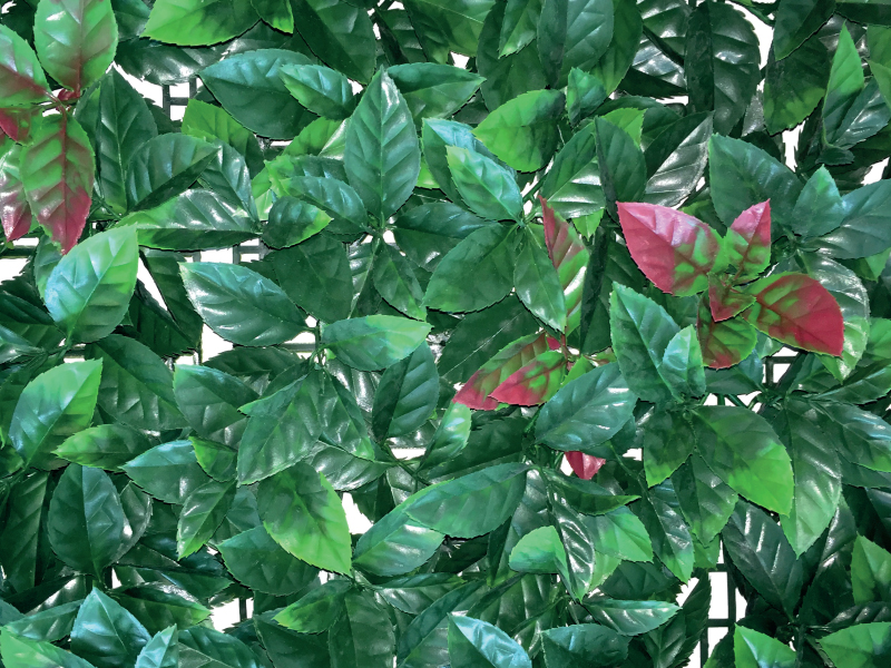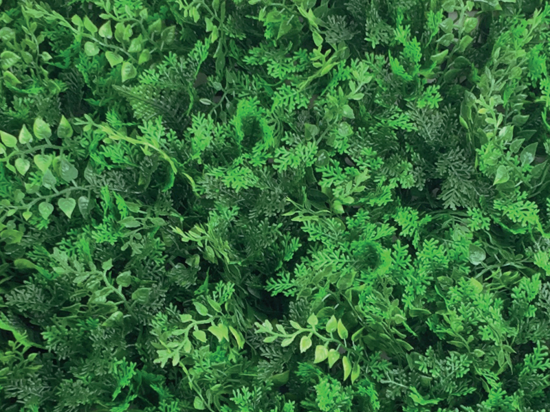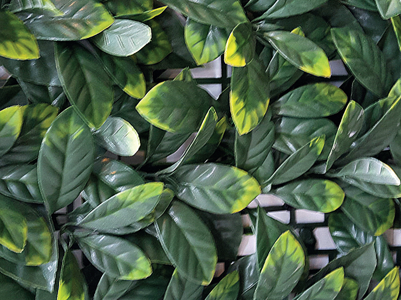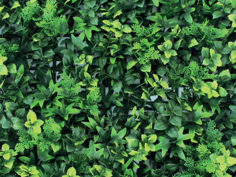 Cerco de plantas confeccionado con follaje artificial de polietileno aditivado con protección UV, fácil de instalar. Funciona como enredadera, muro verde o jardín vertical. No requiere ningún tipo de mantenimiento. Su presentación es en paneles automontables de 50x50cm.